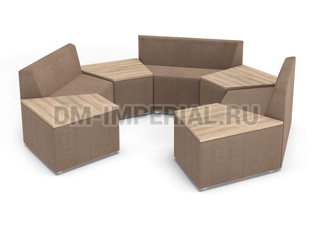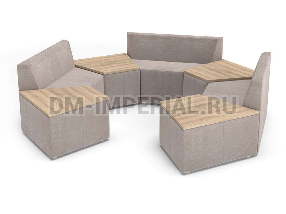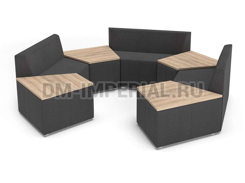 Состоит из: Модуль Трапеция V со спинкой, Арт.: ШМ-ММ-ЭММ-020 - 3 шт. Модуль Столик Трапеция, Арт.: ШМ-ММ-ЭММ-045 - 4 шт.