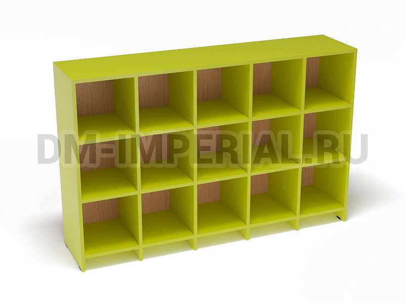 Здесь Вы можете ознакомиться с вместительным шкафом (габариты - 1380*320*900) для хранения детских горшков, рассчитанного на 15 ячеек. Секции обладают квадратной формой и хорошо подойдут для размещения предметов гигиены. Разумеется, спектр применения мебели намного шире. По желанию такой шкаф можно использовать для хранения других личных вещей ребенка.