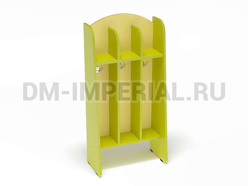 Предлагаем Вашему вниманию стильный детский шкафчик «Волна» напольный. Модель трехсекционная. Для каждого ребенка предусмотрено индивидуальное отделение, оборудованное всем необходимым для хранения личных вещей, полотенец, предметов гигиены. Шкаф устанавливается на прочные опоры. В нижней части есть небольшое пространство, которые можно использовать для хранения чего-либо.