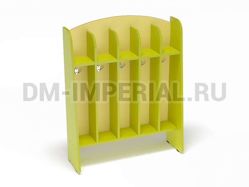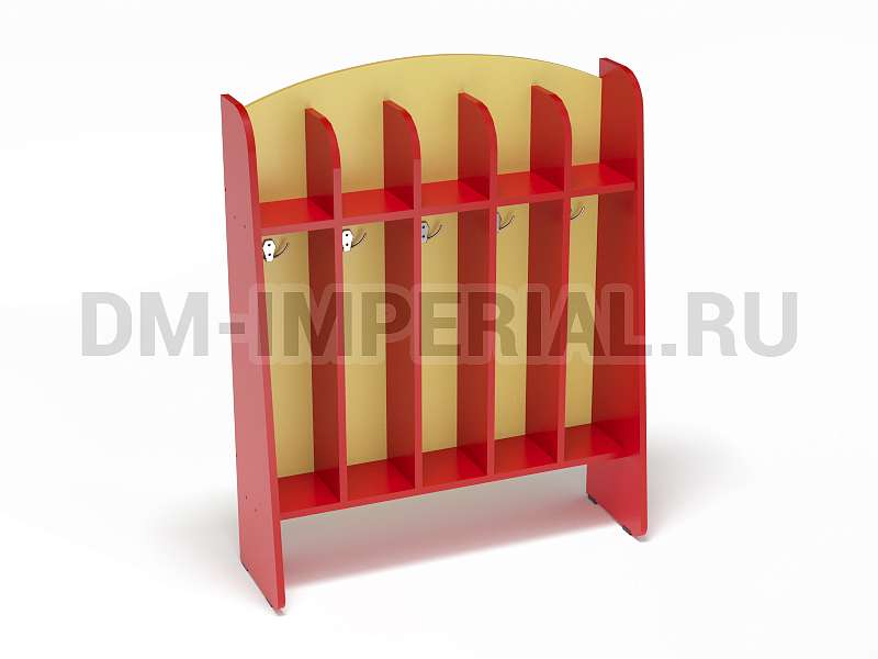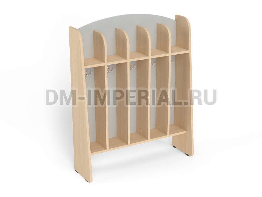 Конструкция включает сразу пять секций. Для каждого ребенка предусмотрено индивидуальное отделение для хранения личных вещей. Есть полочка для мелочей и крючок, на который можно повесить полотенце.