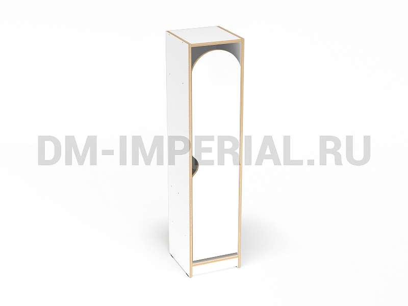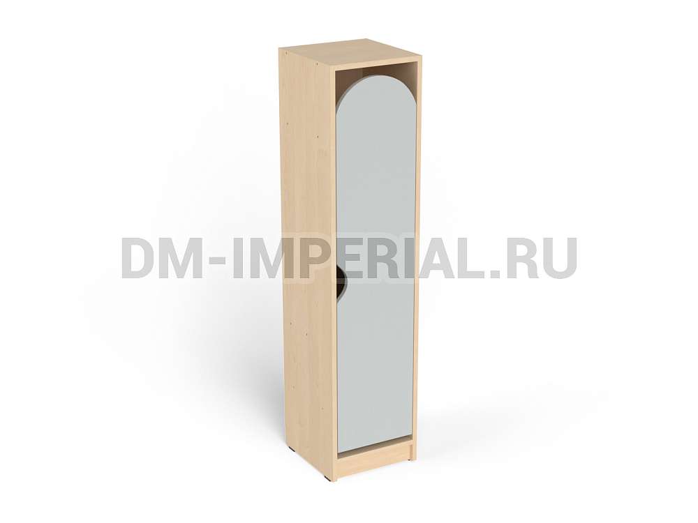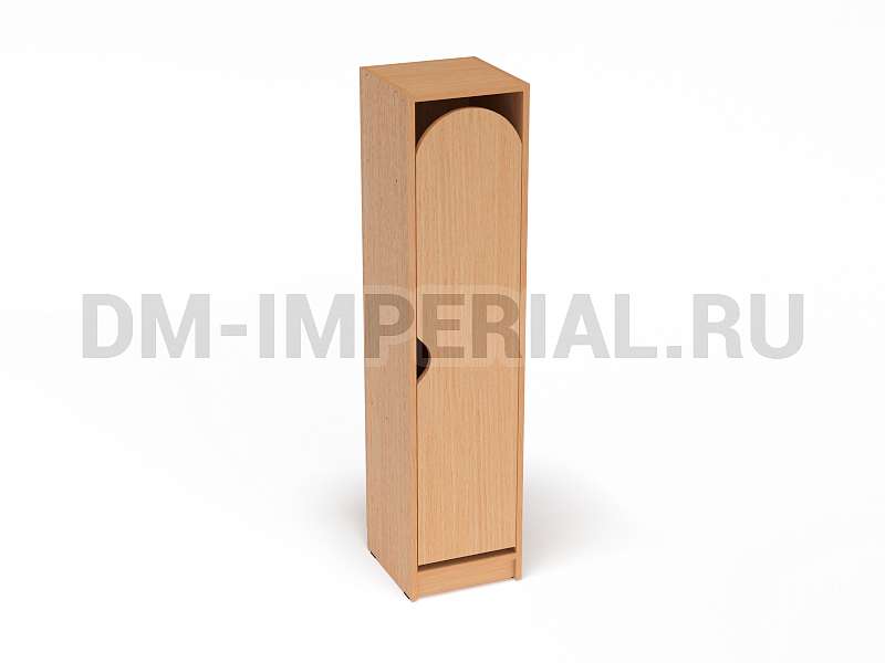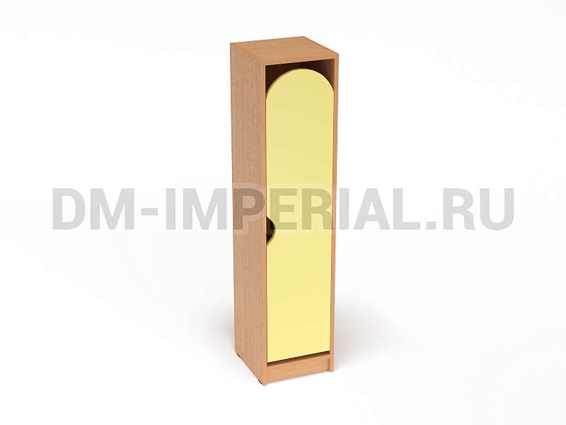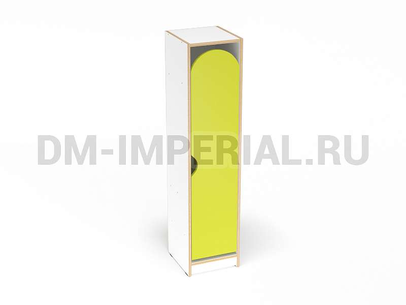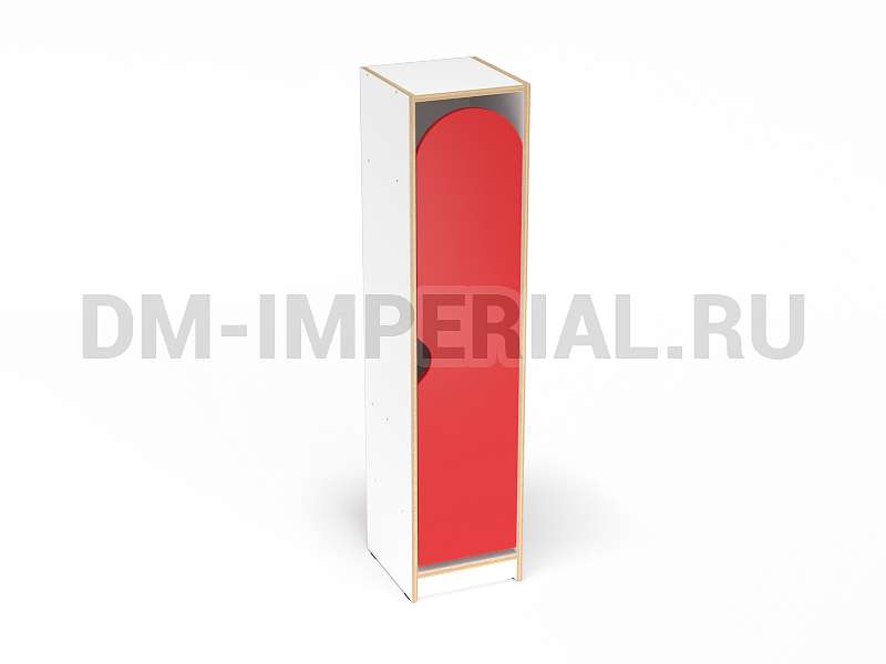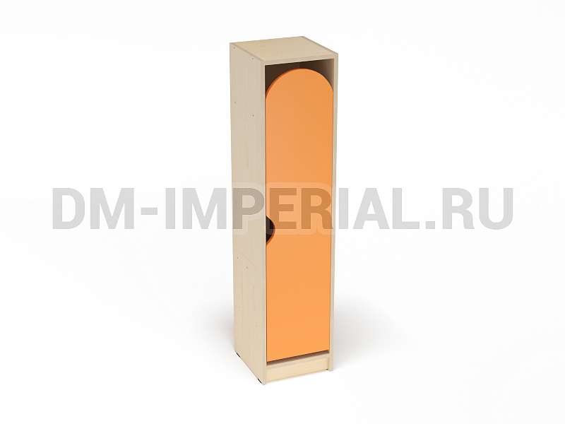 На данной странице размещен шкаф детский односекционный, выпускаемый в рамках серии модульной мебели. Модель может размещаться отдельно, либо сочетаться с другими шкафами. Линейка предоставляет широкий выбор вариантов: угловые, 1-5 секционные. Конструкция стандартная: зона для хранения вещей с дверцей, устанавливаемая на цоколь. Дверь оснащается полукруглой выемкой-ручкой. В верхней и нижней части шкафа есть отверстия для обеспечения беспрепятственной циркуляции воздуха.