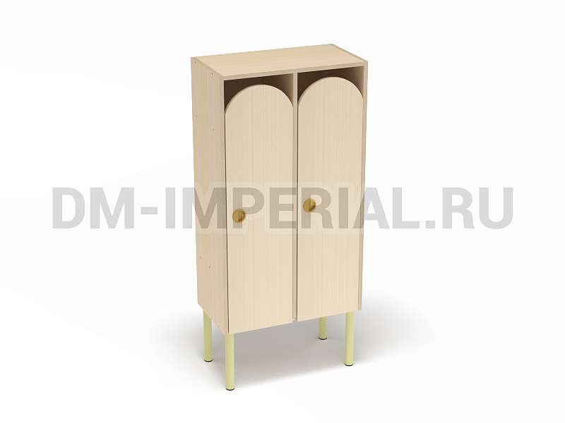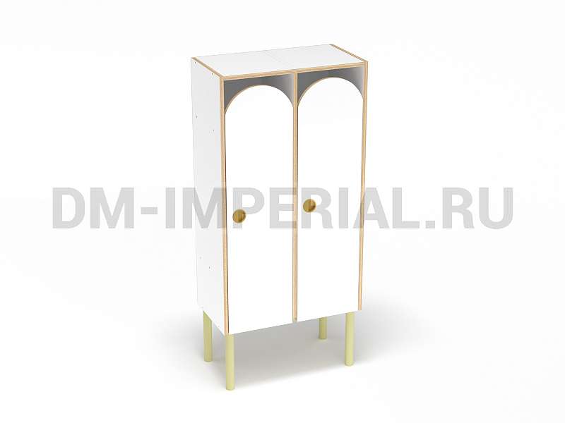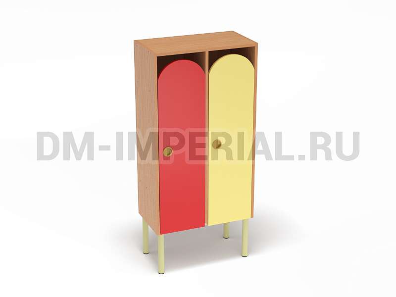 Шкаф двухсекционный изготавливается из ламинированных панелей ЛДСП. Данный материал хорошо подходит для изготовления подобной мебели, поскольку отличается высокой прочностью, износостокостью и сопротивлением воздействию влаги. Металлические части не подвержены коррозии.
