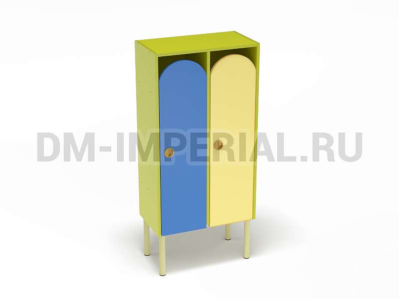 Конкретно этот шкаф, представленный на данной странице сайта, имеет две секции для хранения одежды и обуви. Расчитан на пользование двумя детьми одновременно. Внутреннее наполнение удобно. Шкаф оснащается отделением для хранения верхней одежды, полкой для аксессуаров и личных вещей. В нижней части располагается металическая, сетчатая полочка, на которой можно разместить обувь. Такое дизайнерское решение очень удачно, так как позволяет хранить в шкафу влажные и грязные вещи и при этом не портить мебель излишками влаги. Актуально на холодный сезон.