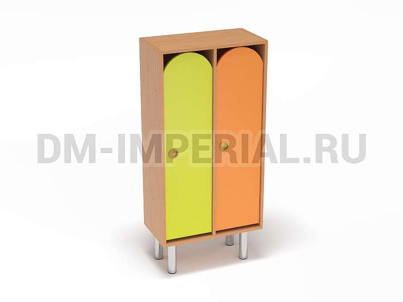 Представленная на данной странице модель шкафчика предназначена для эксплуатации детьми дошкольного возраста и отлично подойдет для оформления раздевалок. Рассчитана на пользование одновременно двумя детьми. Для каждого ребенка предусмотрена своя индивидуальная секция, закрывающаяся на дверцу с удобной, круглой ручкой. Внутри есть все необходимое для комфортного размещения личных вещей, обуви, аксессуаров, верхней одежды.