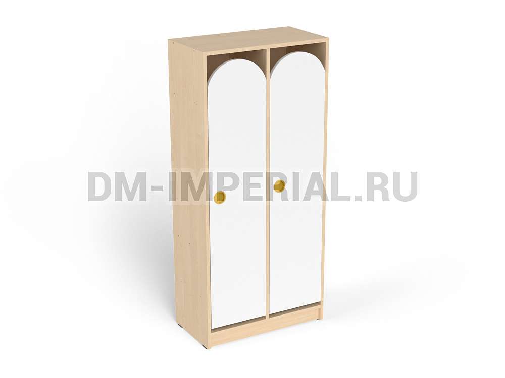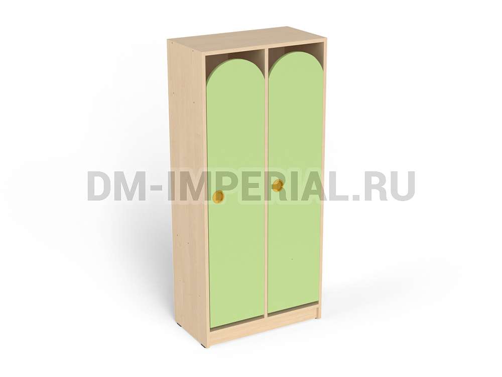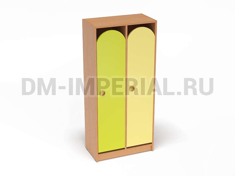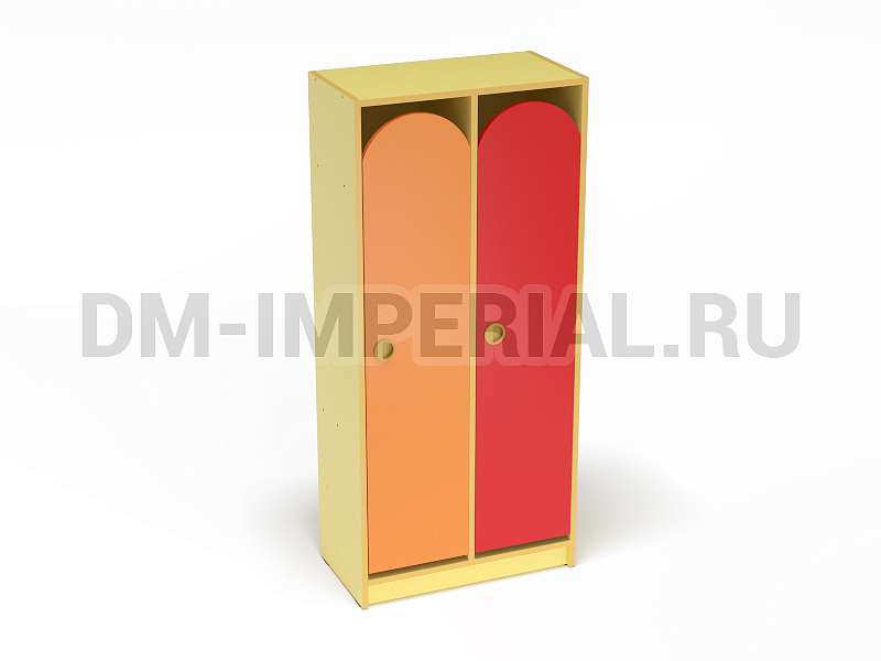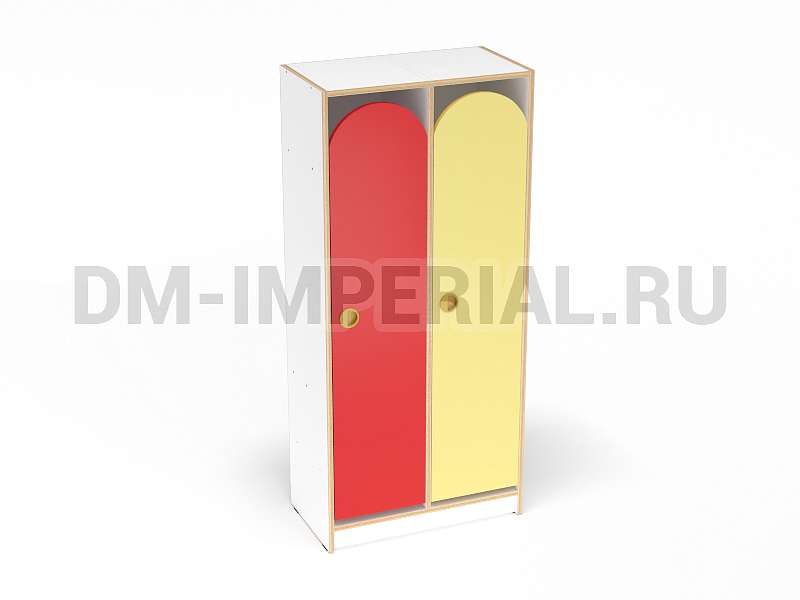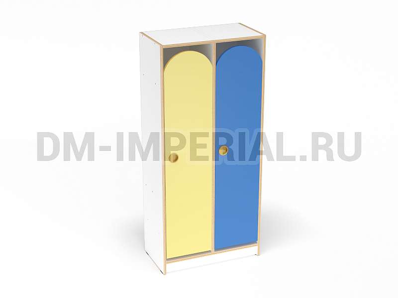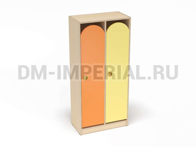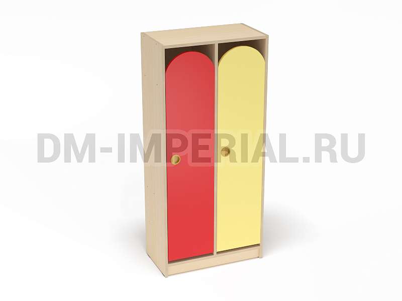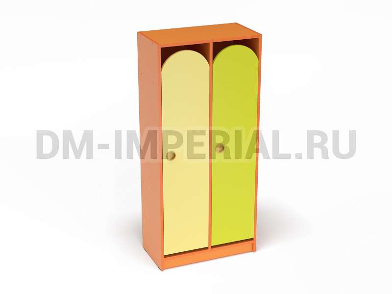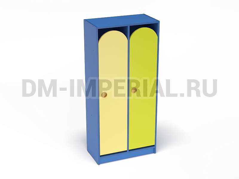 Конструкция данной модели включает сразу две секции, т.е. шкаф предназначен для пользования двумя детьми одновременно. Относится к серии модульной мебели. Может устанавливаться отдельно или комбинироваться с другими шкафами. Такой вариант удобен, облегчает планирование пространства и предоставляет больше возможностей для его обустройства. Особенно актуально для небольших комнат.