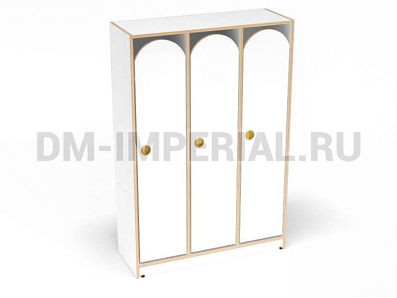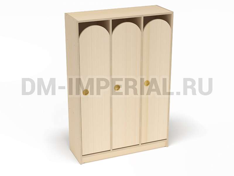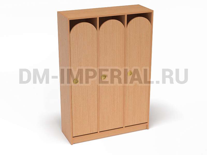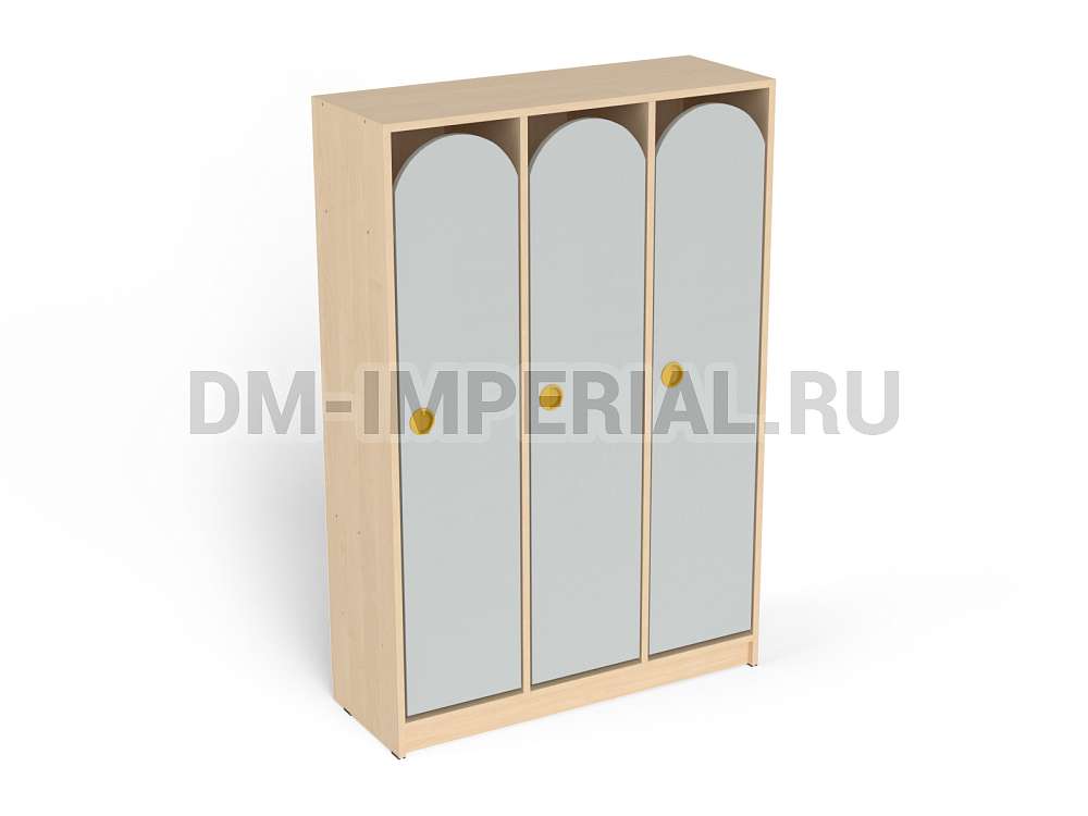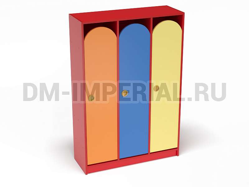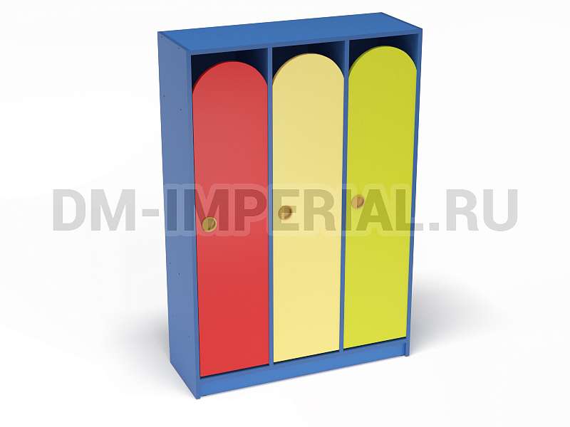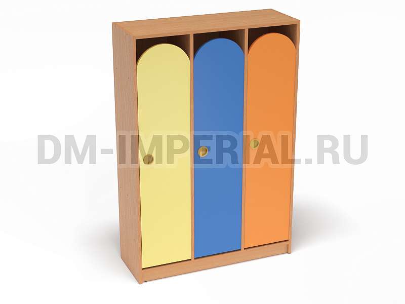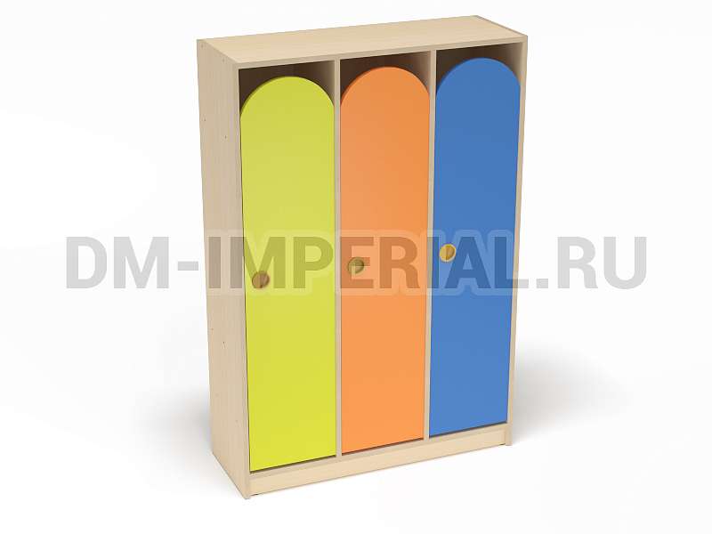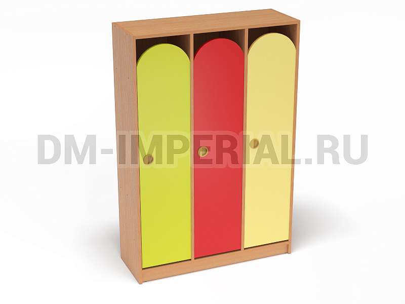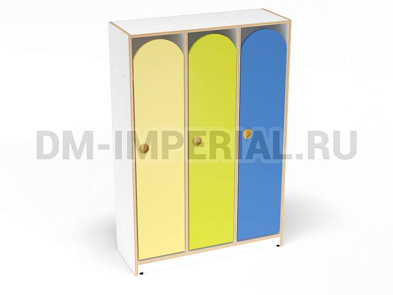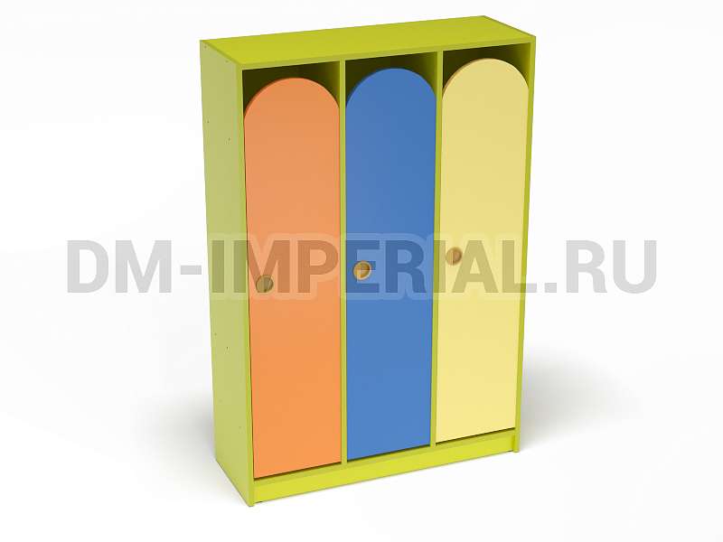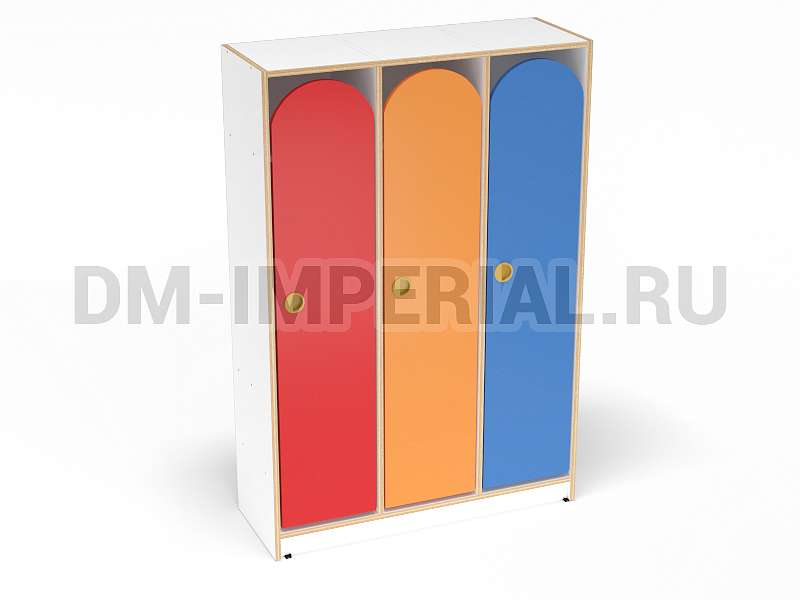 Шкаф трехсекционный предназначен для пользования одновременно тремя детьми. Выпускается в рамках линейки модульной мебели. Модель можно комбинировать с другими шкафами (угловой, 1-5 секций), создавая различные композиции. Подобная гибкость в организации системы хранения позволяет лучше продумывать окружающее пространство, делать его более функциональным и удобным.