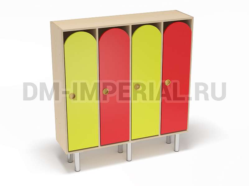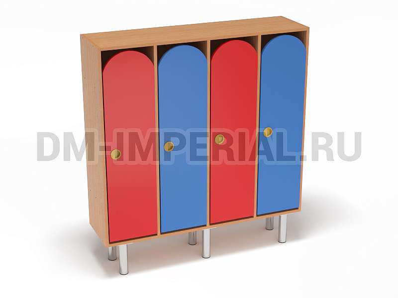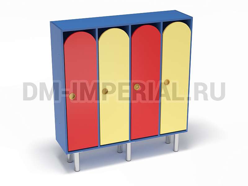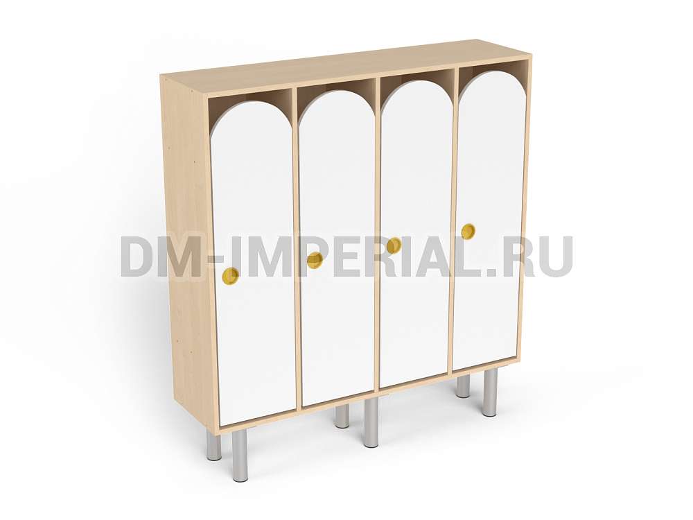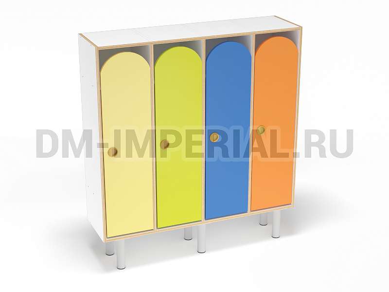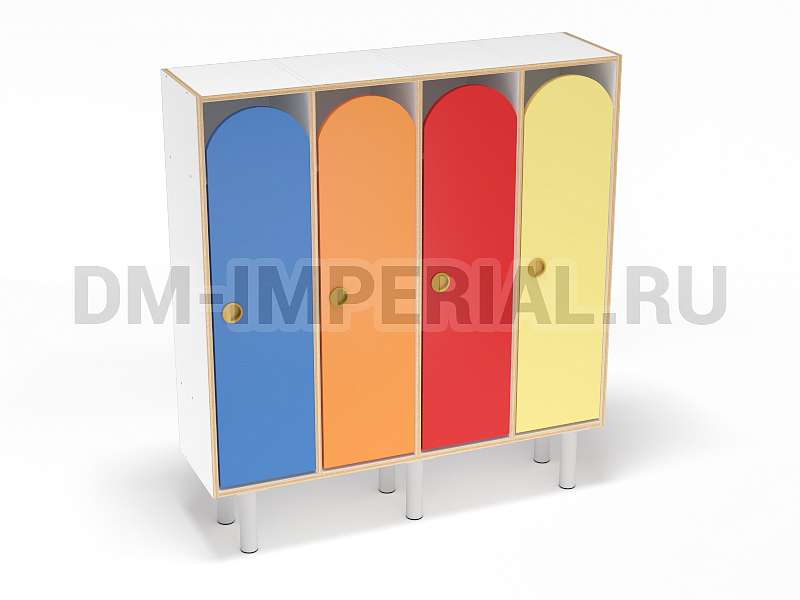 Данная модель шкафа оснащается четырьмя секциями для хранения одежды. Каждое отделение закрывается дверцей с удобной, круглой ручкой. Шкаф комплектуется полками и крючками для аккуратного размещения верхней одежды, обуви, аксессуаров и прочих личных вещей ребенка.