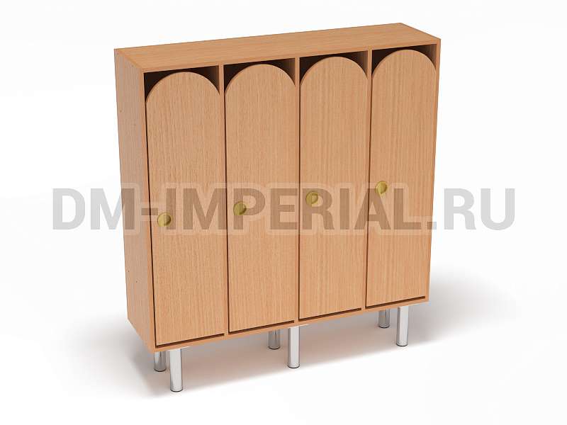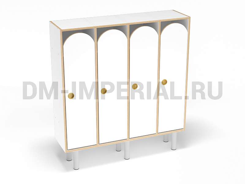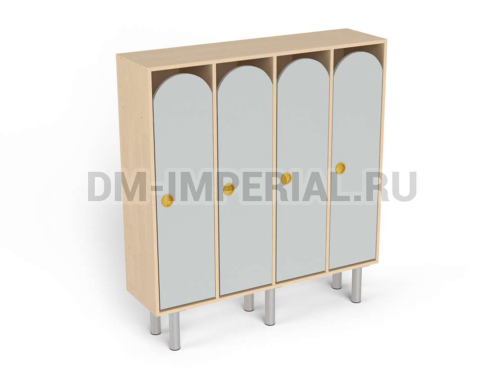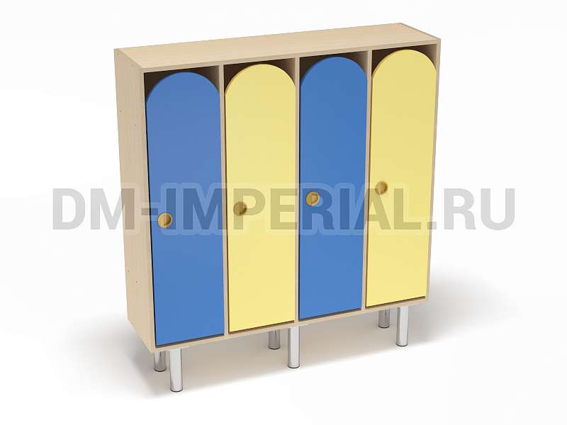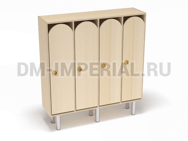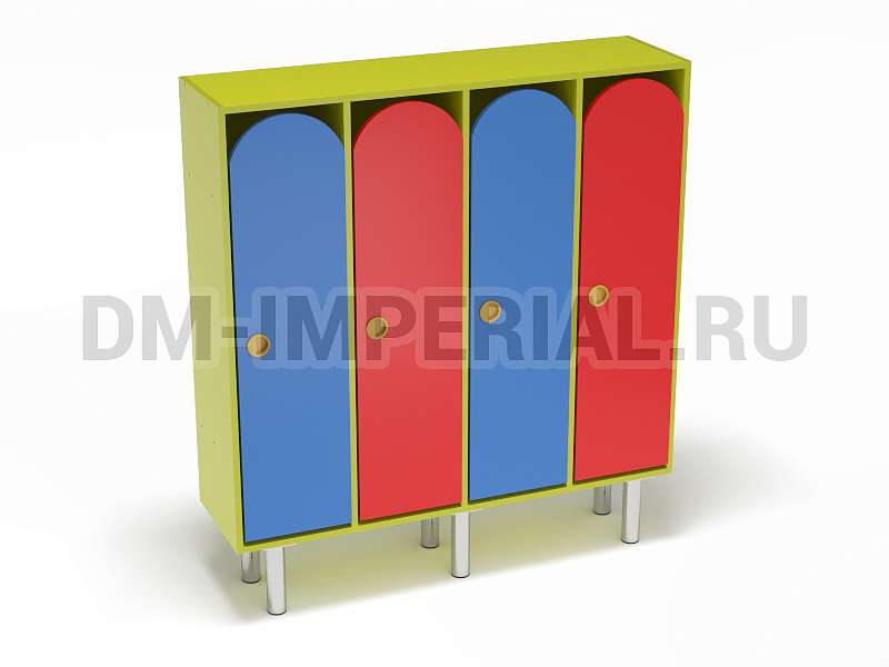 Данная модель шкафа оснащается четырьмя секциями для хранения одежды. Каждое отделение закрывается дверцей с удобной, круглой ручкой. Шкаф комплектуется полками и крючками для аккуратного размещения верхней одежды, обуви, аксессуаров и прочих личных вещей ребенка.