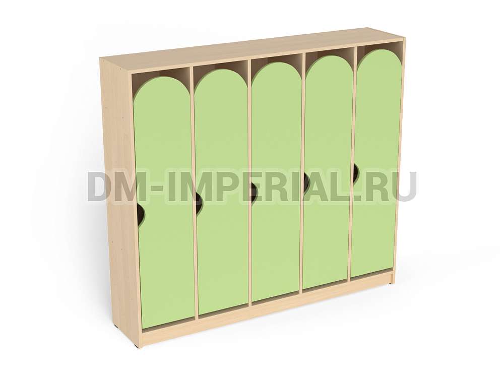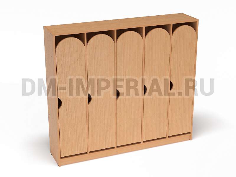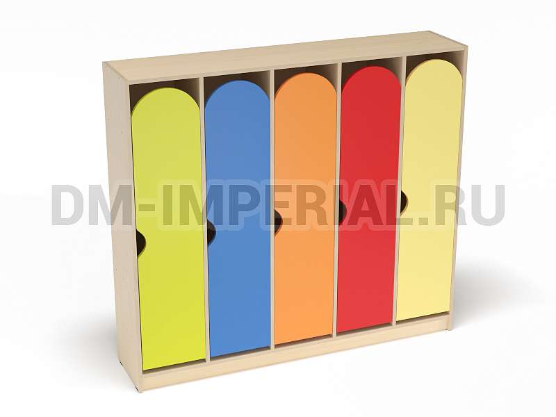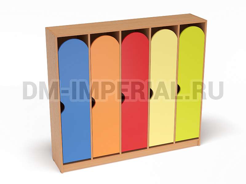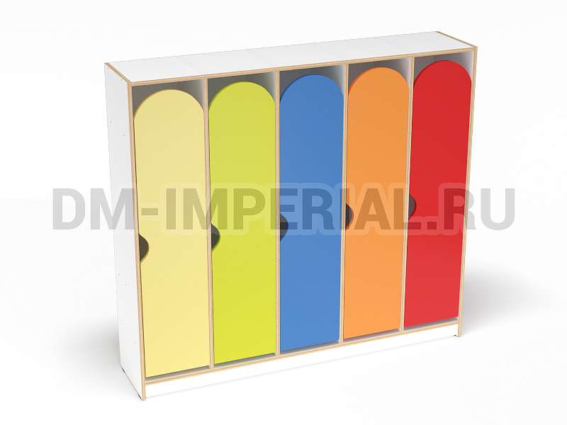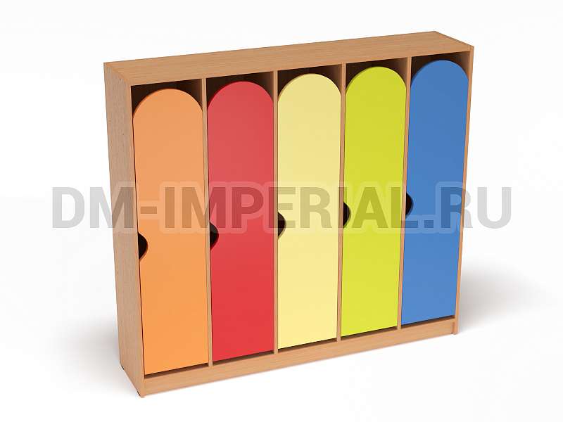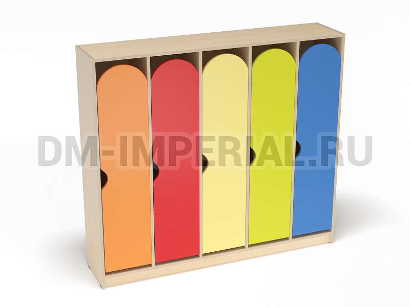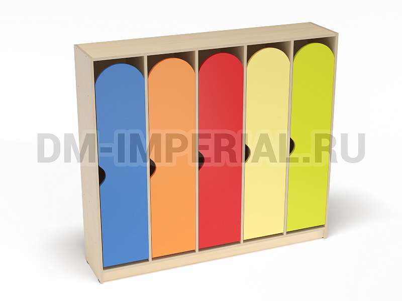 Для каждого ребенка предусмотрен индивидуальный закрытый шкафчик. Секции вместительны, позволяют расположить внутри одежду, обувь, личные вещи. Дверцы оснащаются полукруглыми ручками. Шкаф устанавливается на цоколь. Конструкция полностью безопасна. Шкаф устойчив, надежен.