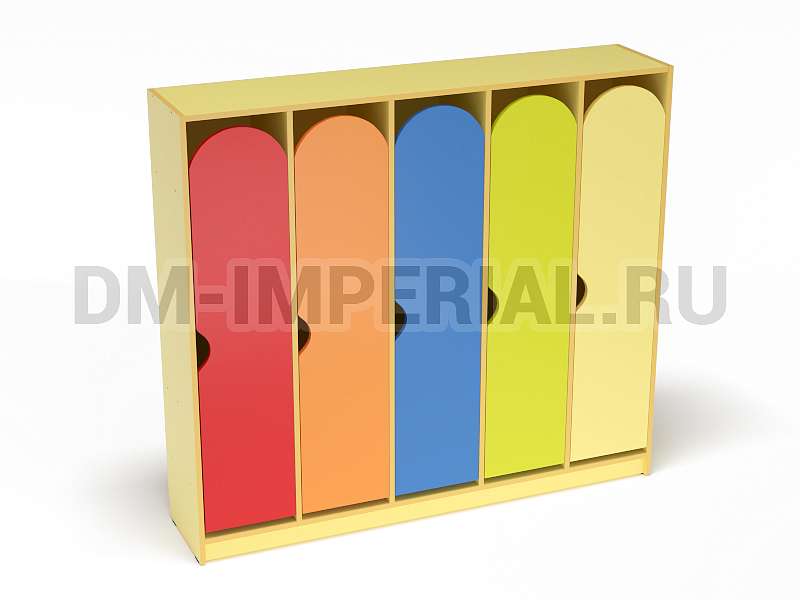 Представленный на данной странице шкаф является самым большим в линейке модульной мебели «Стандарт». Габариты - 1490*320*1320 мм. Модель предназначена для оснащения раздевалок в ДОУ, может устанавливаться отдельно или в комбинации с другими шкафами. Включает пять секций и рассчитана на одновременное использование пятью детьми.