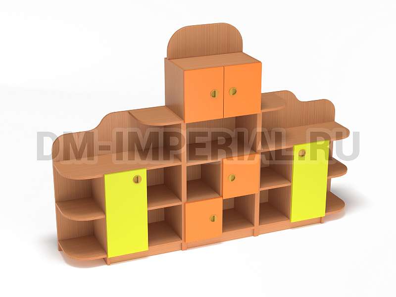 Такой стеллаж станет прекрасным украшением пространства для обучения и игр ДОУ!
