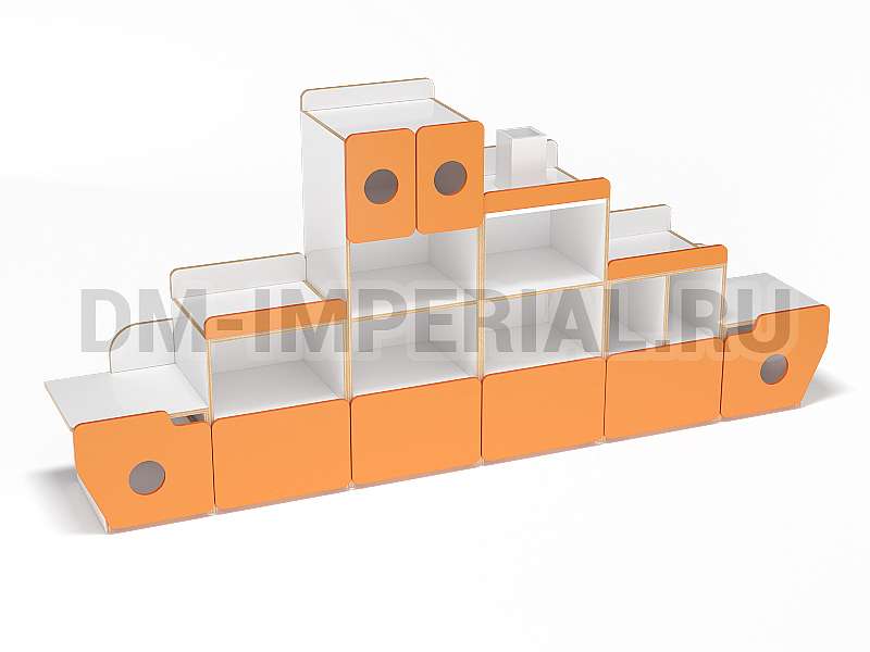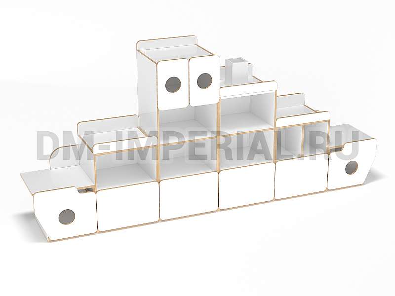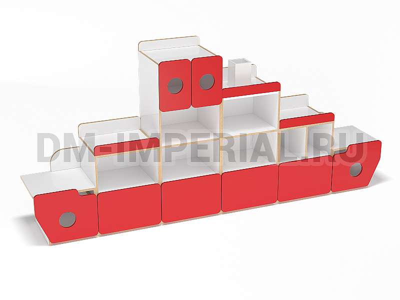 Для того, чтобы придать стеллажу оригинальности, Вы можете воспользоваться окрашиваниями. Палитра цветов DM Imperial богатая. Спектр цветов включает как лаконичные варианты (под натуральное дерево), так и более броские оттенки (красный, синий, лимонный и т.д). Корабль не обязательно оформлять полностью в одном тоне. Вы можете скомбинировать несколько цветов. Ознакомьтесь с примером на картинке товара.