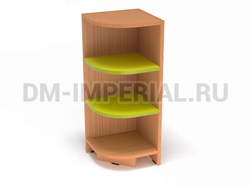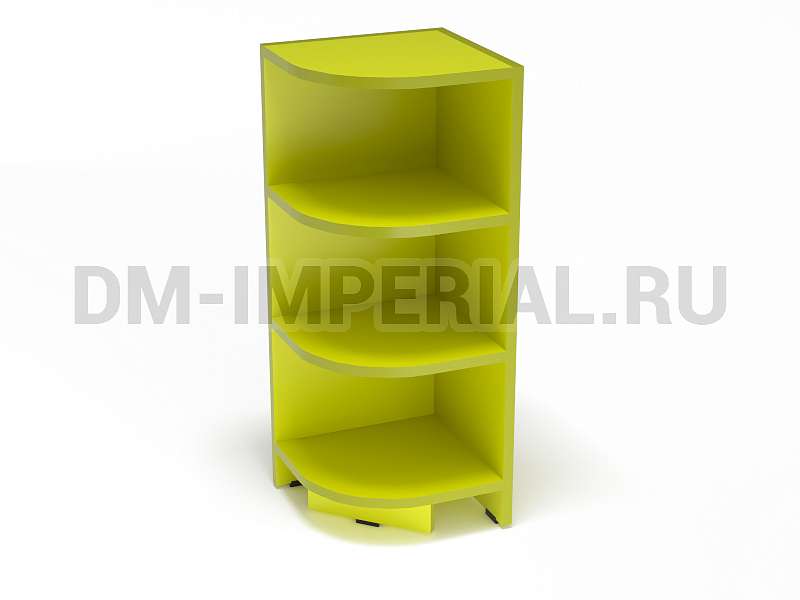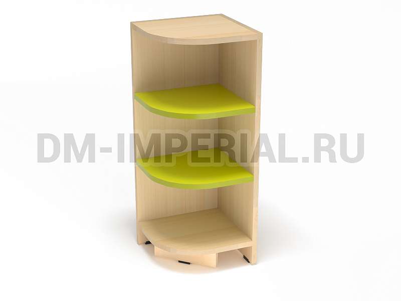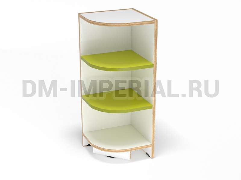 Данная мебель задействует открытую систему хранения. Оснащается закругленными полочками, на которых можно разместить учебники и книжки, игрушки и декор. Модель устанавливается на ножки, дополненные мягкими накладками, чтобы предотвратить царапанье покрытия пола.