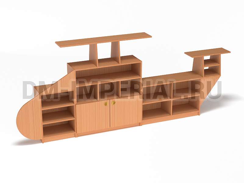 Стеллаж «Вертолет» делается из ламинированных панелей ЛДСП толщиной 16 мм. Торцы мебели облицовываются кромкой ПВХ толщиной 2 мм. Вся конструкция отличается высокой прочностью и надежностью. Материалы подбираются качественные, от проверенных производителей. Краски безопасные, не токсичные. Стеллаж изготавливается согласно ГОСТ к детской мебели.