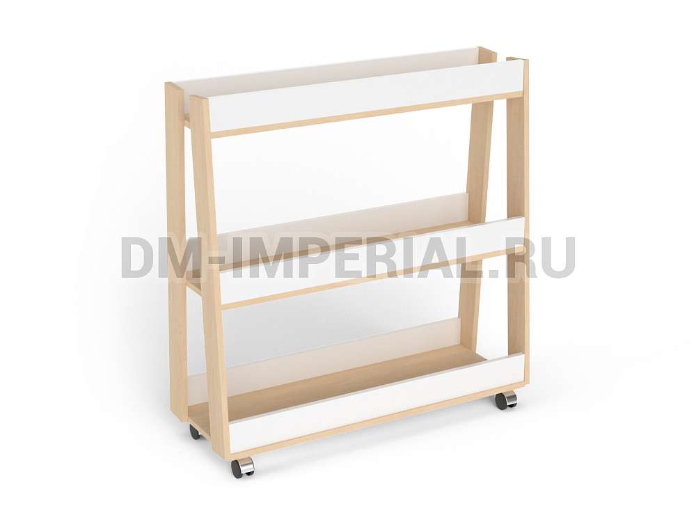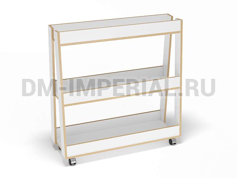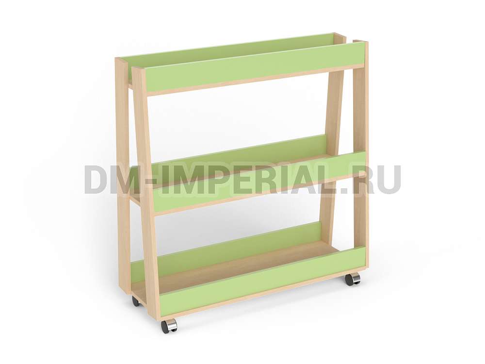 Мебель включает три вместительные секции с высокими бортиками. Такой стеллаж подойдет для хранения мячей разных размеров. Также его можно приспособить под хранение игрушек, книжек и других мелочей, необходимых ребенку. Обратите внимание, что модель мобильная: в нижней части предусмотрены колесики. Небольшой вес конструкции позволяет легко перемещать ее с места на места в зависимости от нужд детей и персонала.